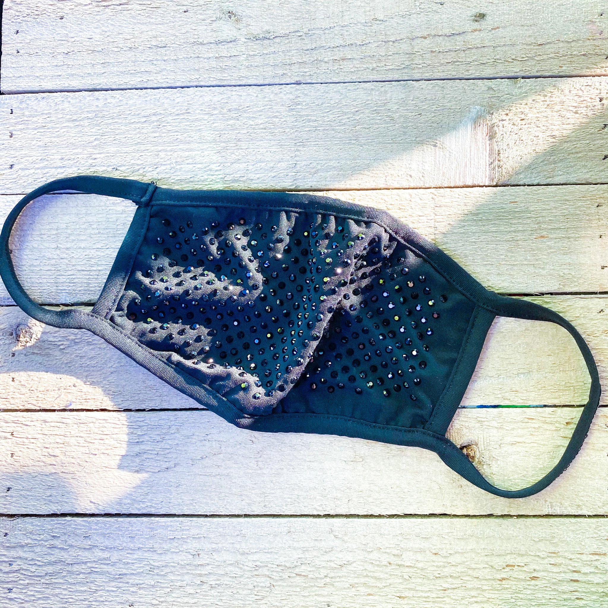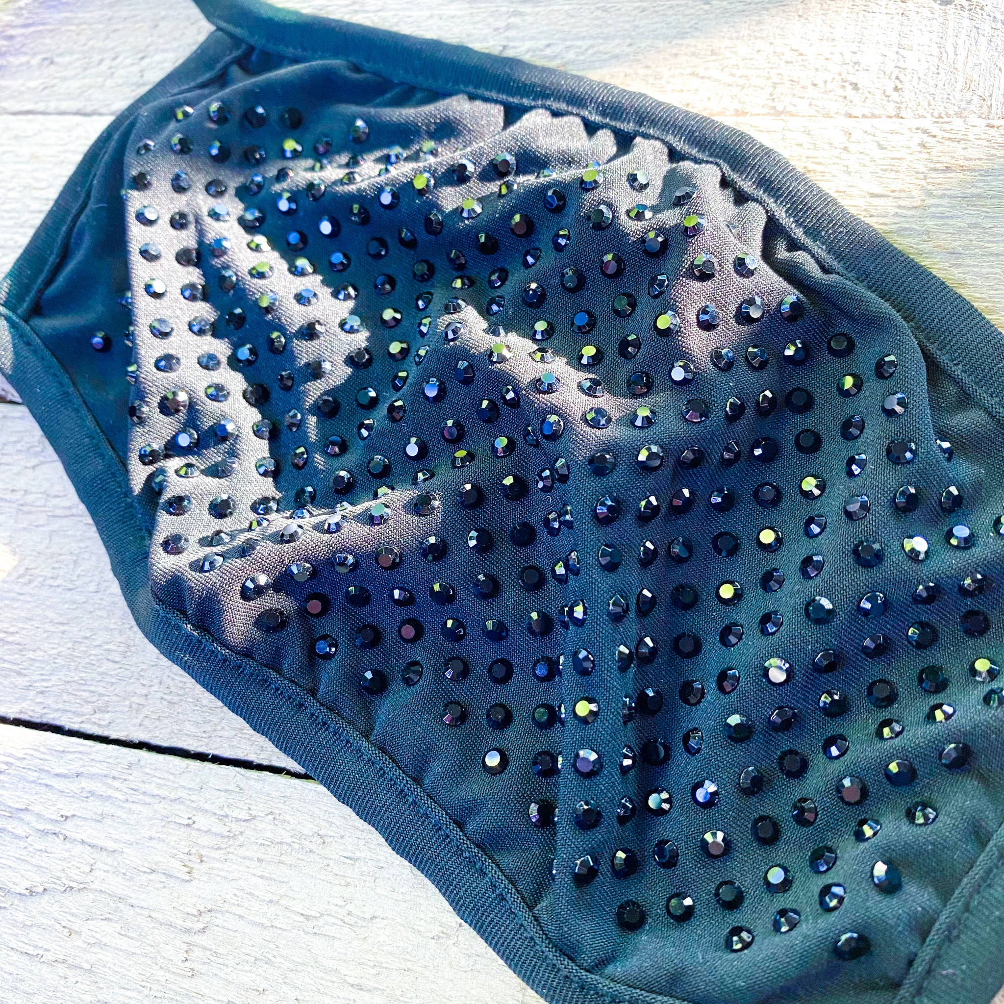 Black Cloth Face-Covering with Black Rhinestones