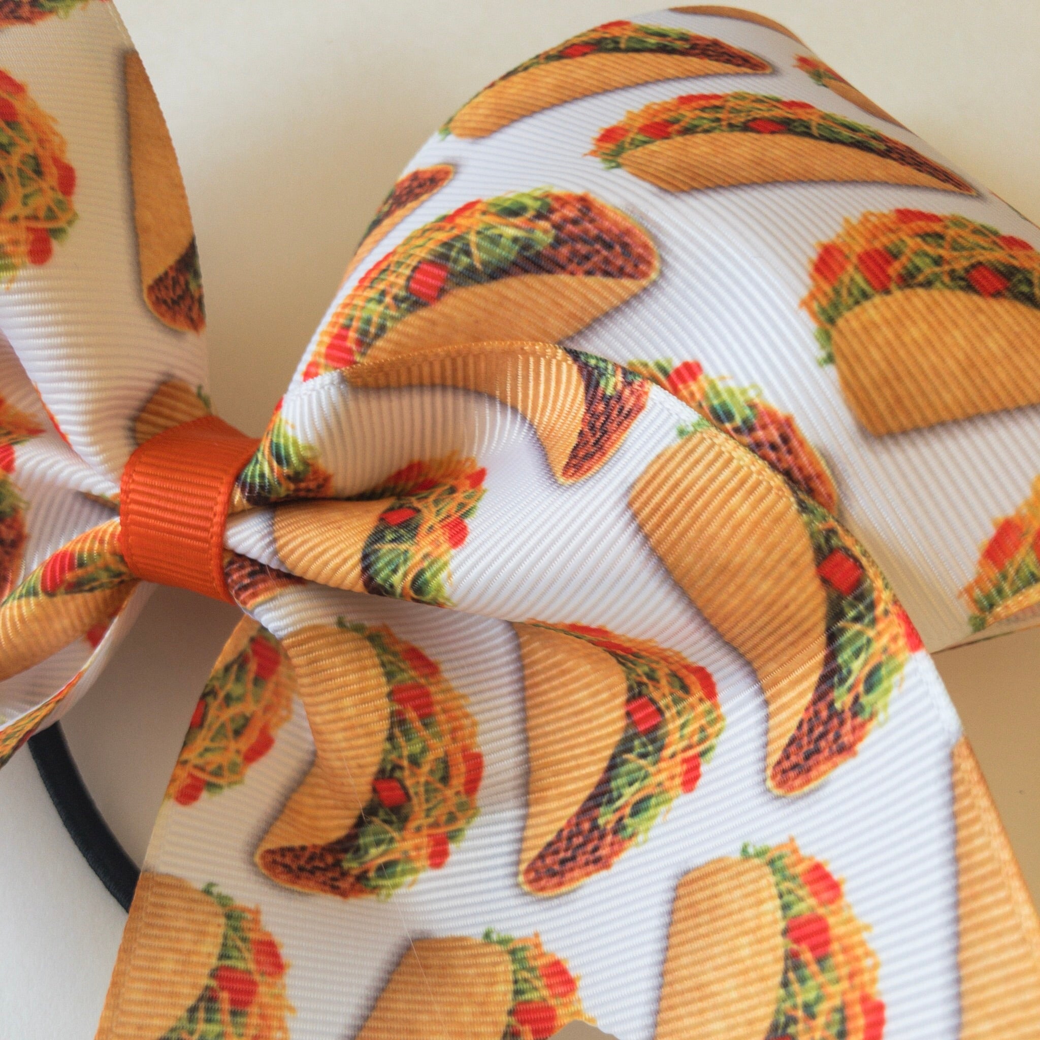 Rows and rows of crunchy taco deliciousness adorn this simple grosgrain ribbon MOXIE cheer bow.
